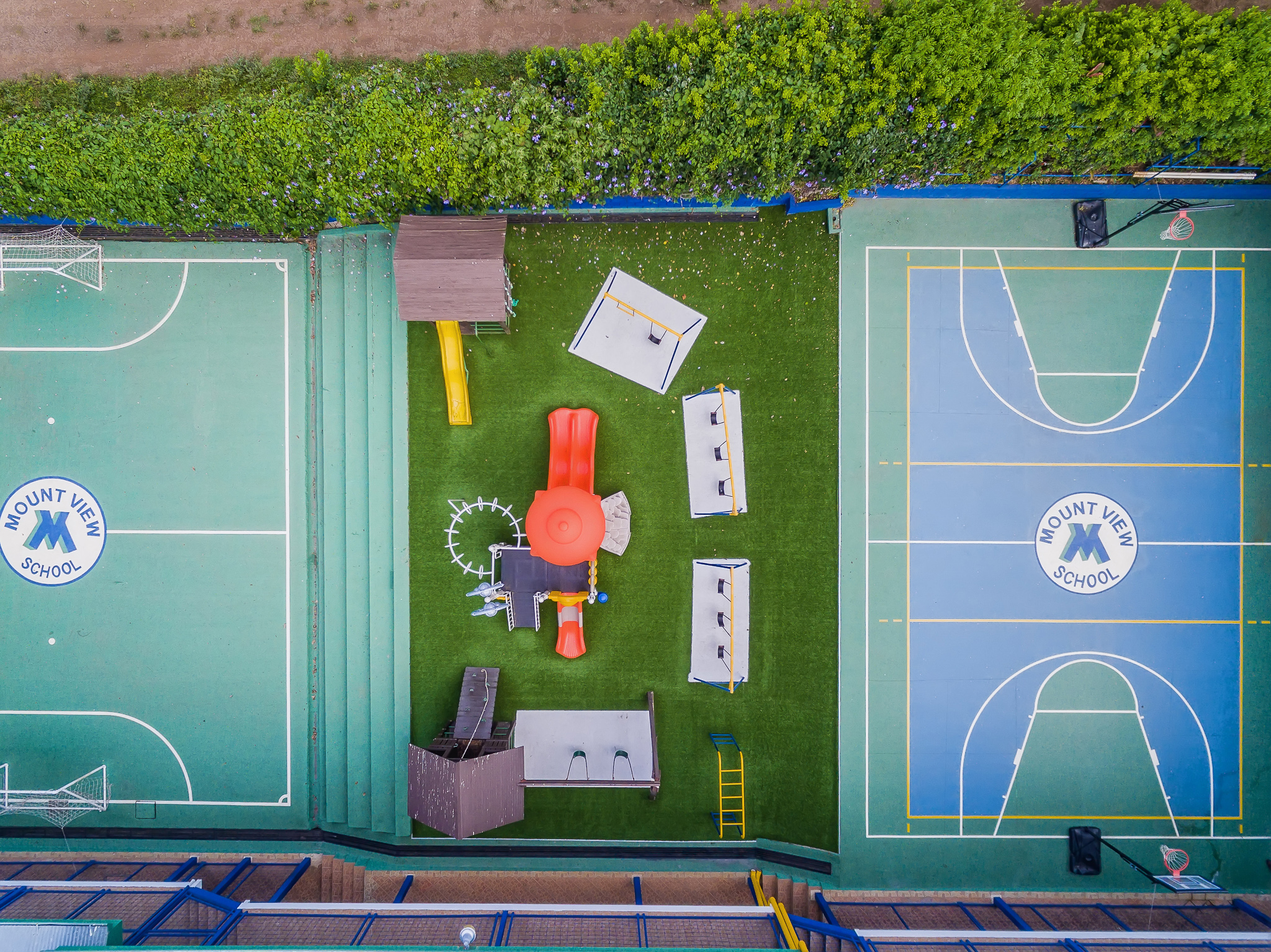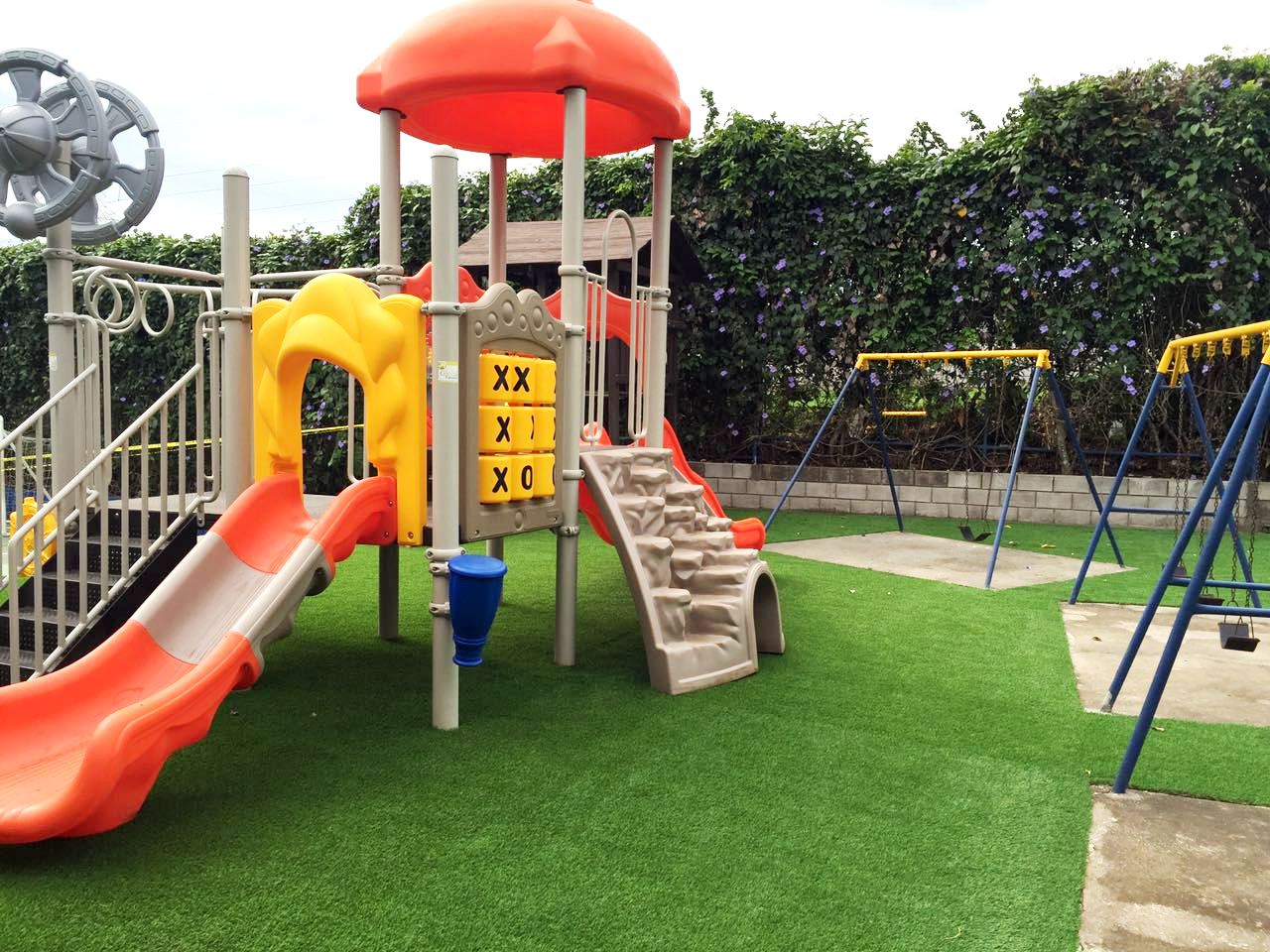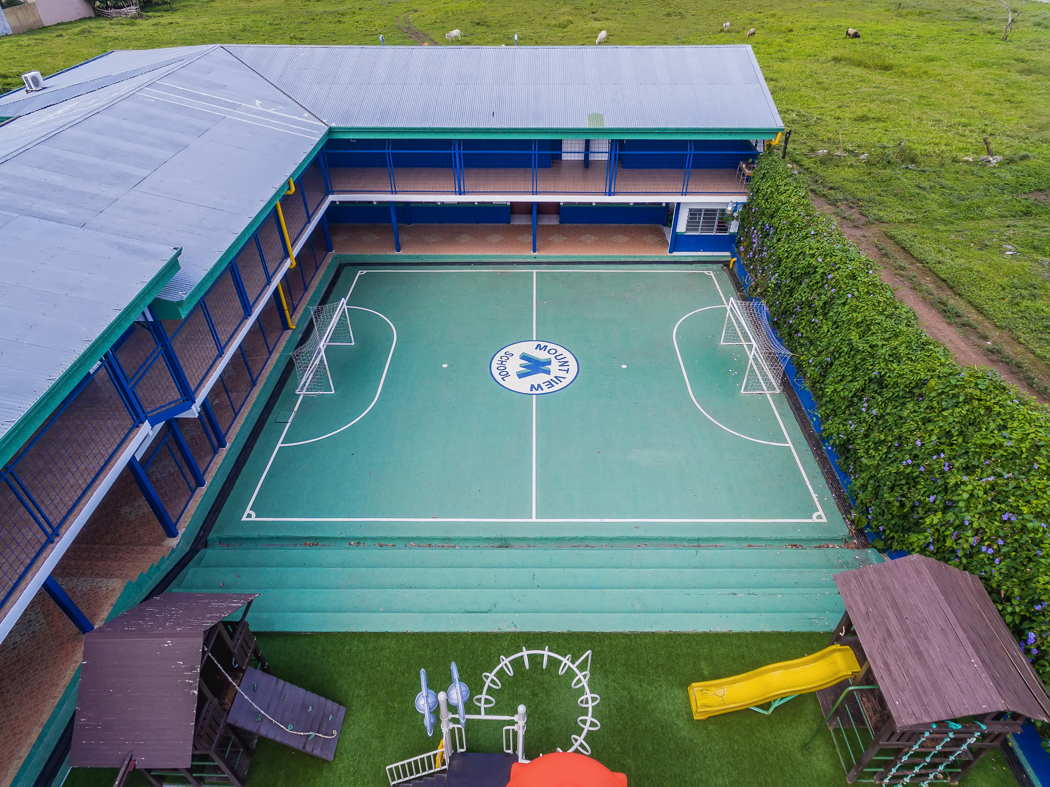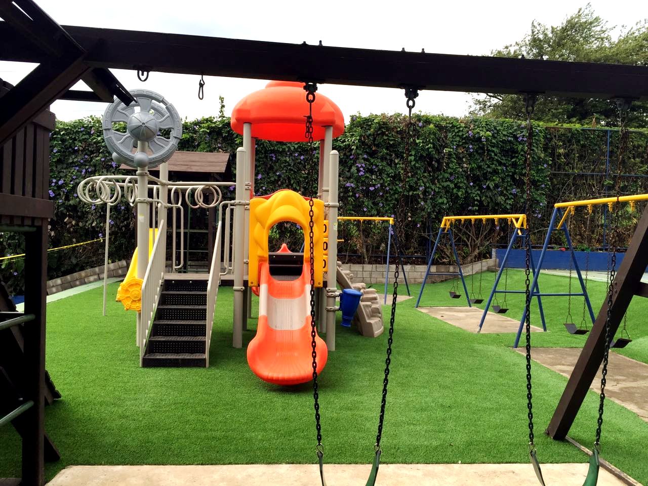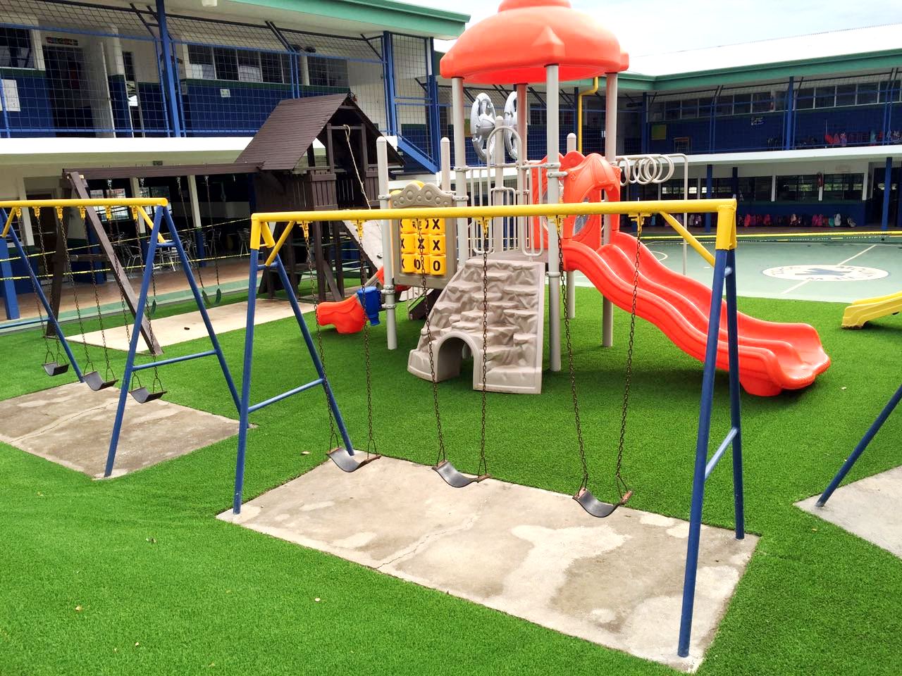 Nuestros estudiantes gozan de amplias y cómodas instalaciones, así como zonas recreativas en donde pueden desarrollarse tanto deportiva como socialmente, amplias aulas, laboratorio de cómputo, taller de arte, cafetería con servicio de almuerzo diario, 1 cancha de volleyball, 1 cancha de basketball, 3 canchas multiusos y actualmente somos la ÚNICA Institución Educativa del sector con cancha sintética certificada por la FIFA.