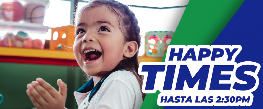 ¨Happy Times¨ es la modalidad de horario extendido de Preescolar que ofrece nuestra Institución por un costo adicional a la mensualidad; ésta consiste en ofrecerle a los padres y madres de familia de nuestros estudiantes de los niveles de Maternal, Pre-kinder y Kinder, cuyo horario de salida regular es a las 12:00md, que puedan quedarse en un programa de actividades extracurriculares con personas especializadas en el campo y con el servicio de alimentación incluído (almuerzo).